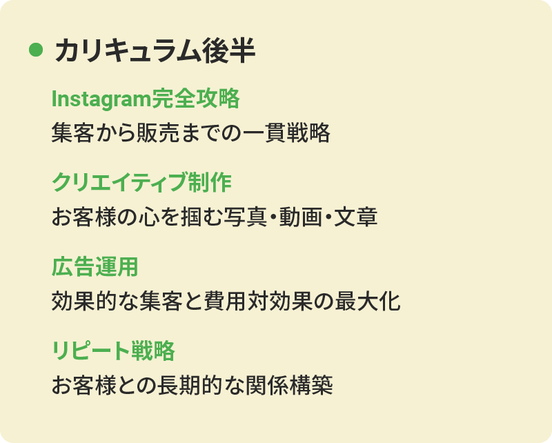 ただ、学習と同時に課題の作成や 実際の仕入れ計画や、集客導線の改善など「実務」も進めていただく形になりますので、そのお時間も確保していただけると成果が出やすいです。
