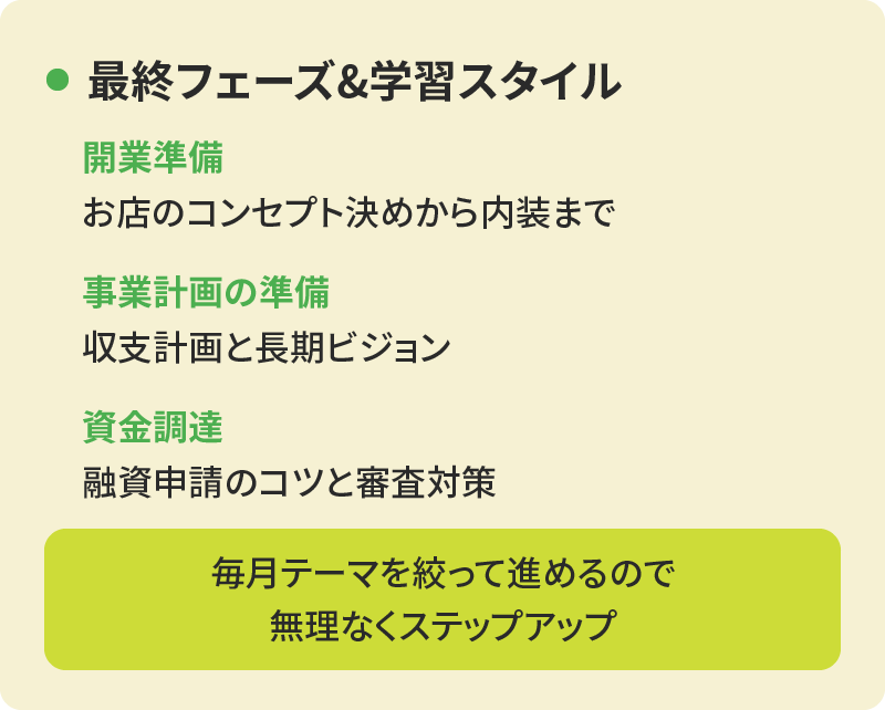 ◉開業を急いでおらず、時間をかけて万全の準備をしたい方